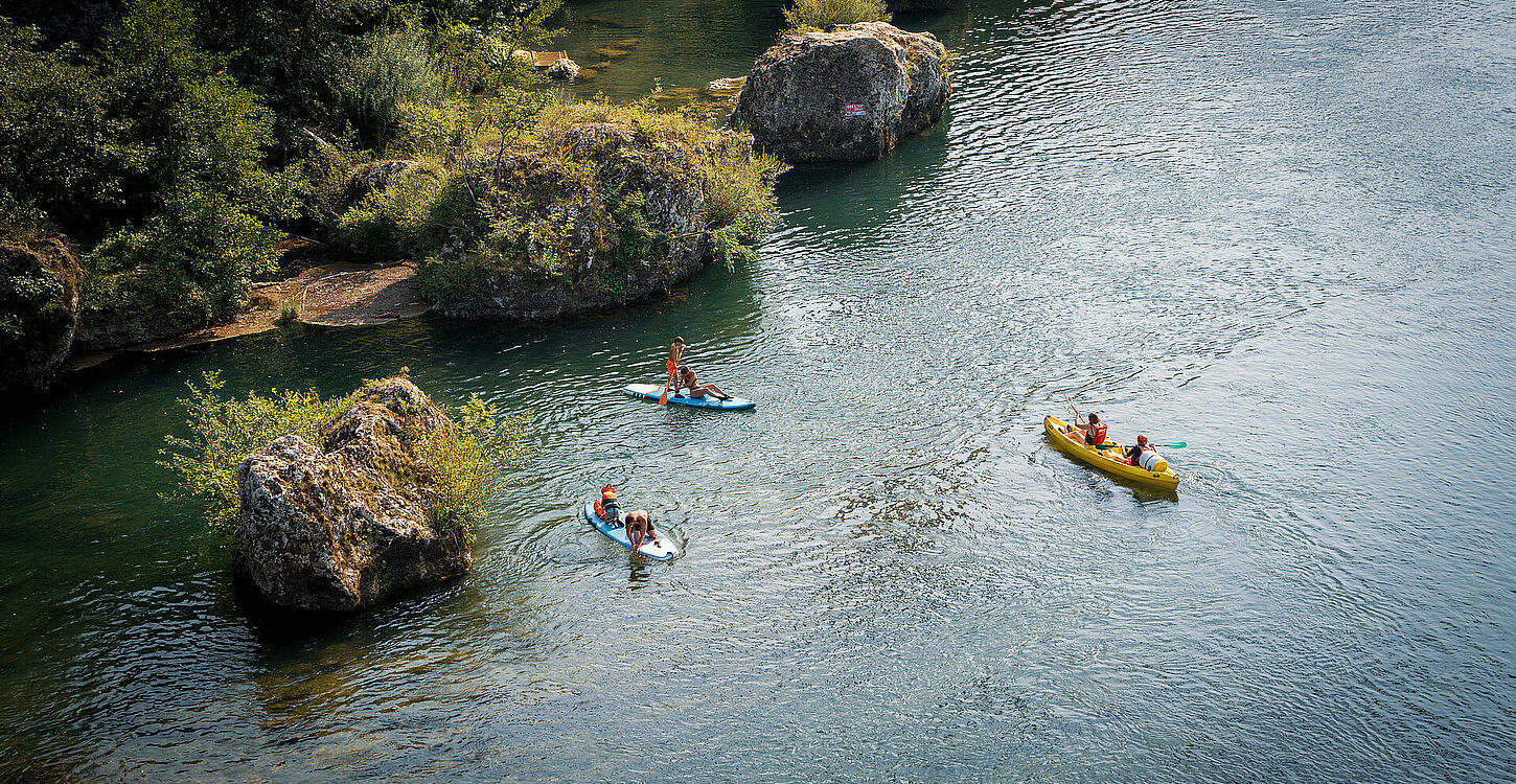 L’eau a creusé de profonds canyons aux falaises vertigineuses et les sépare : Gorges de La Dourbie, Gorges de la Jonte, Gorges du Tarn. Fissurée, trouée, altérée, l’eau qui s’infiltre va user, ronger, dissoudre la roche et donner lieu à la création d’un paysage hors du commun composé de reliefs ruiniformes, de valléessèches mais aussi d’avens, de grottes et de rivières souterraines. Terrain idéal pour la navigation ou la pêche !