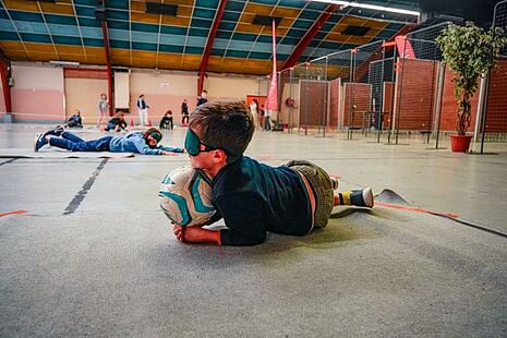 Avec des ateliers de curling à l'aveugle avec un guide, de torball, un genre de foot à genoux où le ballon est sonorisé par des grelots ou de parcours avec une canne d'aveugle. Tous ces ateliers permettent de mieux définir nos cinq sens et de sensibiliser aux déficiences visuelles ainsi qu'aux troubles de l'équilibre.
