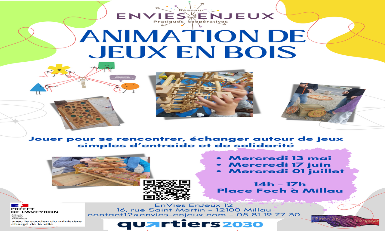 Animation Jeux en bois coopératifs sur la place Foch. Pour tout âge, de 14h à 17h.
