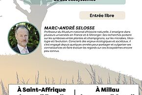 Le08avrilà 20h30 Tout publicConférenceConférence de Marc André Selosse "les sols vivants"Causses compost et alterna bio invitent le professeur du Museum d'Histoire Naturelle pour deux conférences à Millau et Saint-Affrique.Ajouter à mon calendrierPrécédentRetour à la listeSuivant