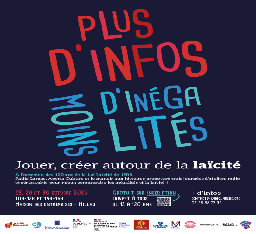 Pour l'occasion, Radio Larzac, Aporia Culture et Le Manoir aux histoires proposent trois journées d'ateliers pour mieux comprendre les inégalités et la laïcité !