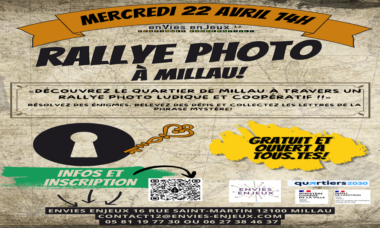 Rallye Photo, énigmes et défis coopératifs ! Le mercredi 22 avril, de 14h à 16h. RV place Emma Calvé Sur inscription.
