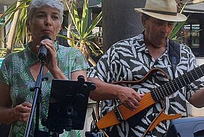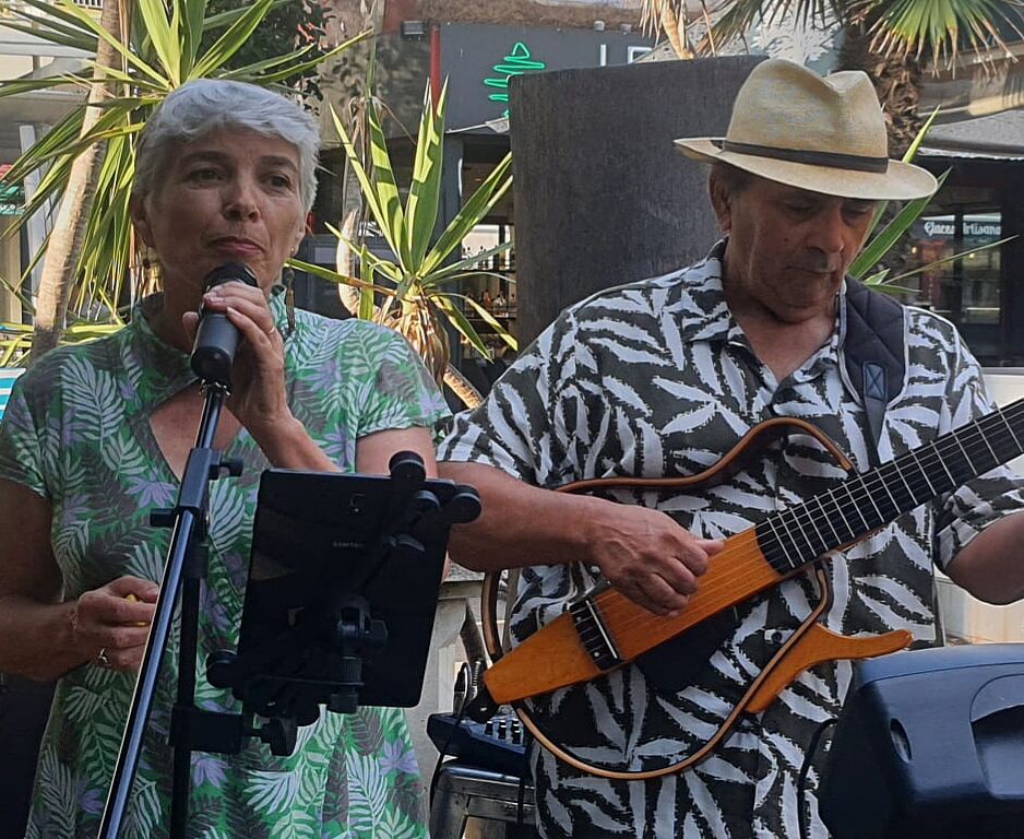 Dans leur répertoire figure aussi quelques chansons françaises d’artistes influencés par la bossa tels que Nougaro, Salvador, Lavilliers. La douce voix de Muriel et les accords mélodieux de guitare de Jimmy vous emmèneront le temps d'une soirée dans une ballade aux accents exotiques ! Pas besoin d’avion ce soir, c’est la musique qui vous emmène au Brésil ! Des mélodies qui réchauffent le cœur, et cette envie irrésistible de taper dans les mains, chanter, bouger.