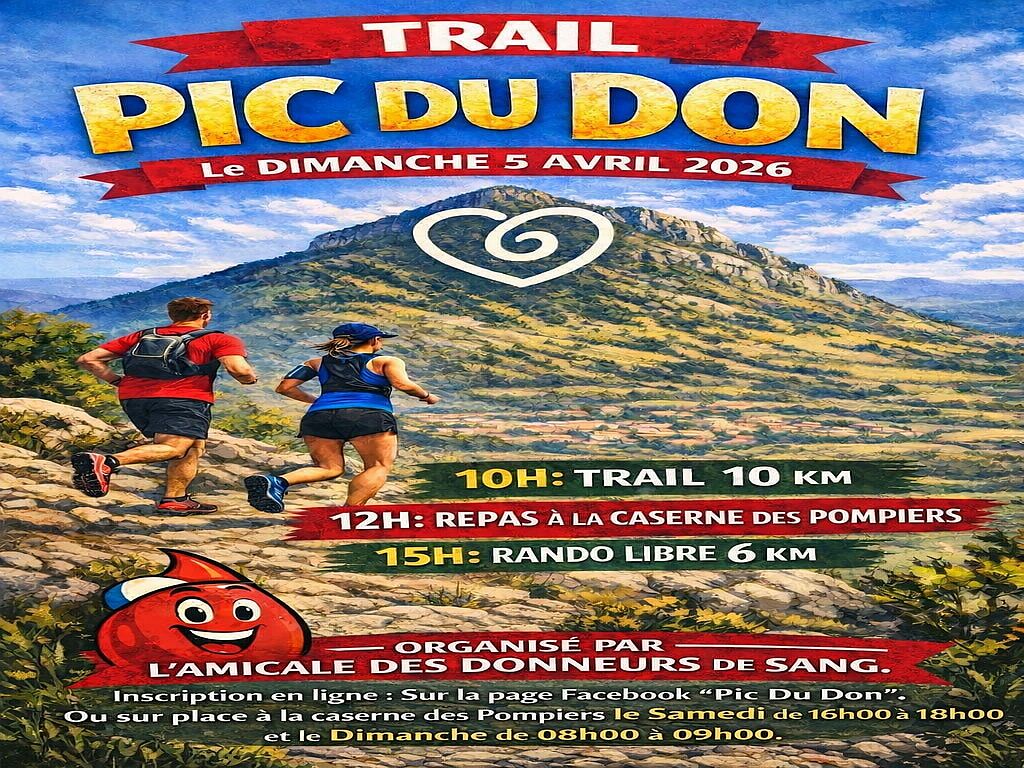 Venez participer à un événement sportif soutenant une bonne cause autour du Pic d'Andan et ainsi apporter votre aide à l'Amicale des Donneurs de Sang Millavois. Dans un esprit convivial, le Pic du Don vous propose un trail solidaire de 10 kms suivi d'un repas. En guise de digestion, vous pourrez également participer à une randonnée libre de 6 kms jusqu'au Pic d'Andan.