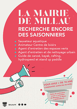 Envoyer une lettre de motivation et un CV à l'attention de Monsieur le Maire à drh@millau.fr