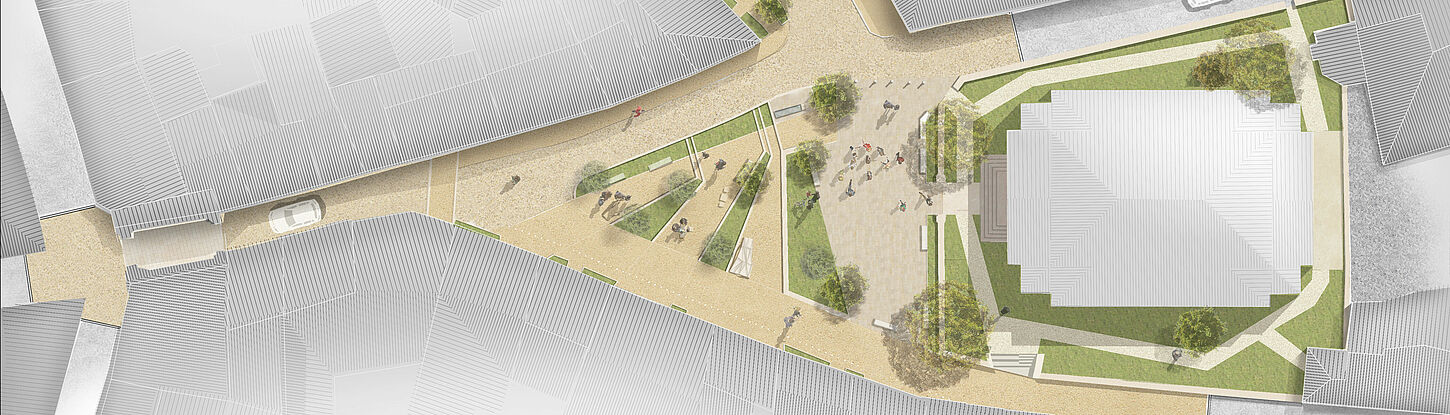 Le réaménagement de la place du voultre s'inscrit dans un projet global de dé désentification du coeur de Ville, réalisé dans la cadre du programme Action Coeur de Ville. Avec un nouvel espace de 1710m2 cette nouvelle place met en valeur le Temple, tout en ajoutant des espaces verts.